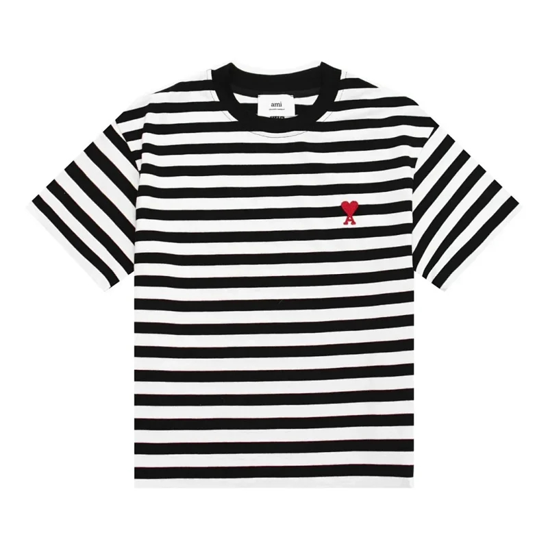AMIPARIS new collection: striped T-shirt with heart embroidery-5198