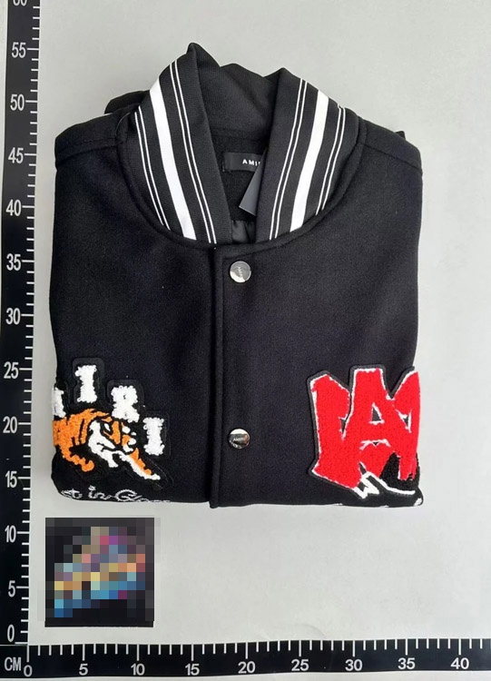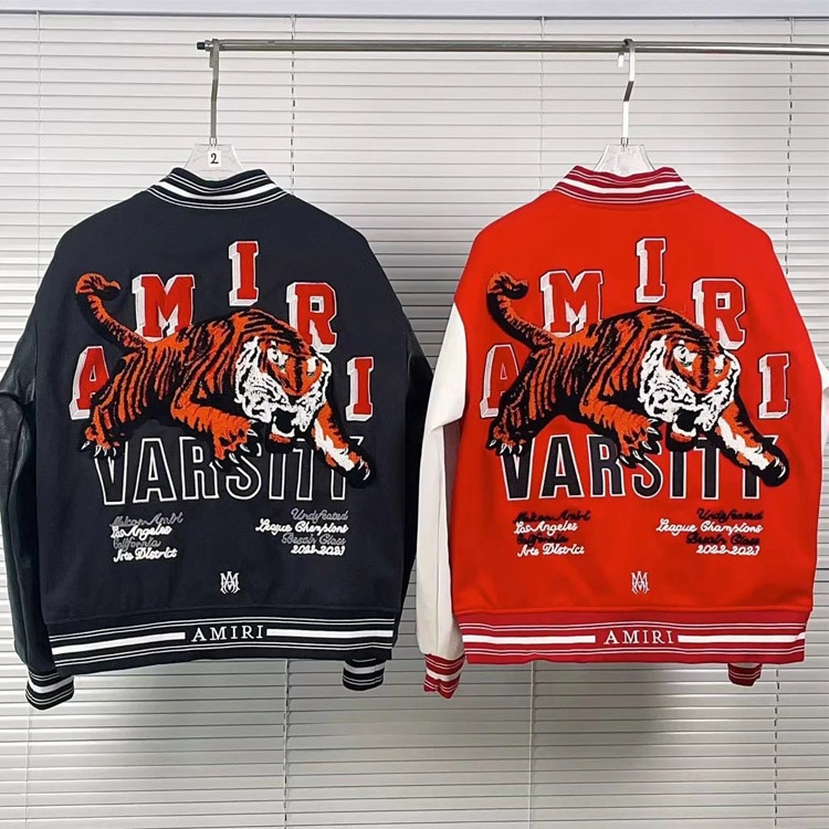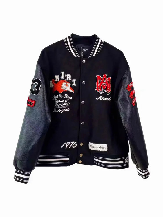 Amiri Embroidered Letter Baseball Jacket with Padded Leather Sleeves-4759