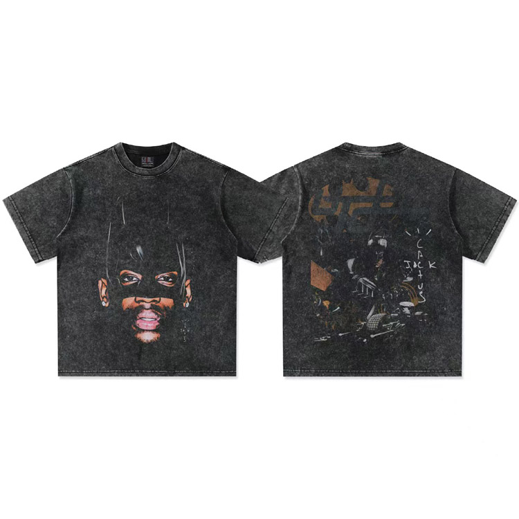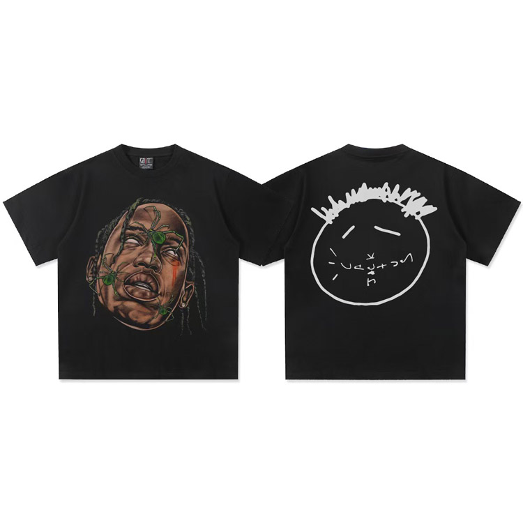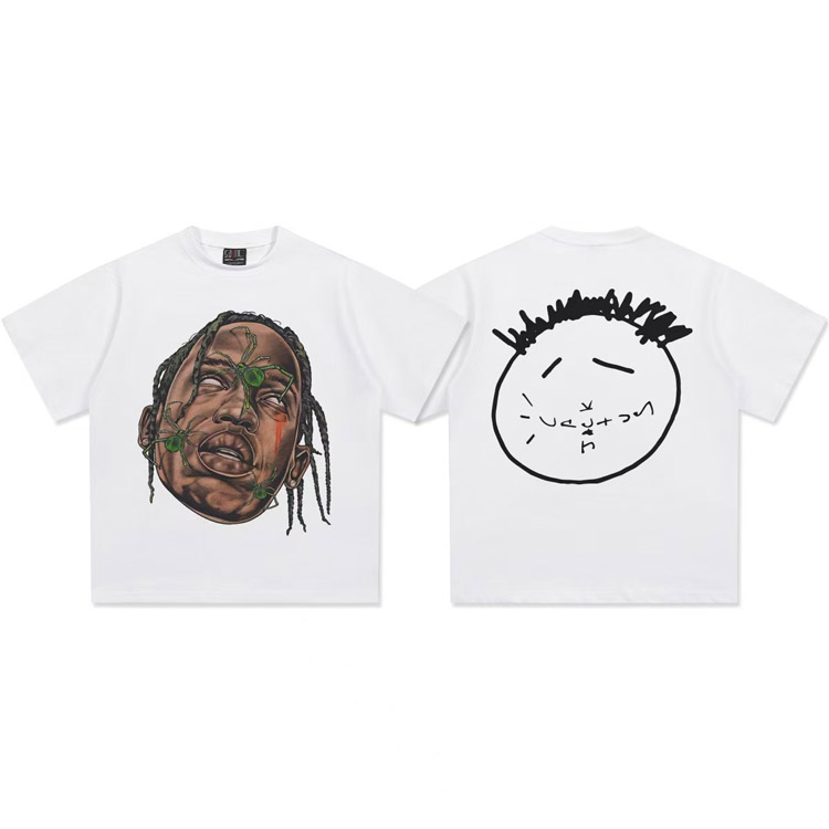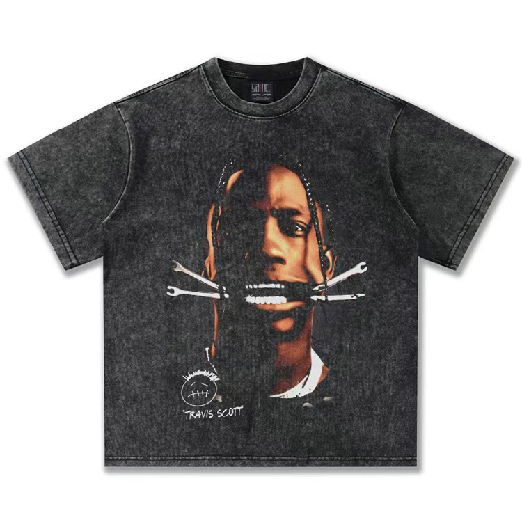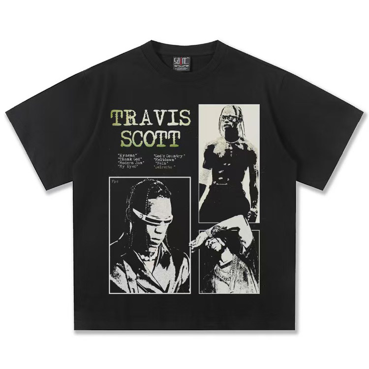 Travis Scott Vintage Pure Cotton Double-Yarn Short-Sleeved T-shirt-5097